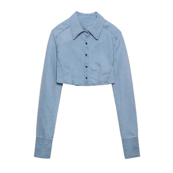 Manufactuer Customized Button Blue Jean Jacket Crop Top Denim Jeans Images |